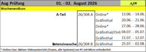 - + 1 Intensivwoche mit Prüfung