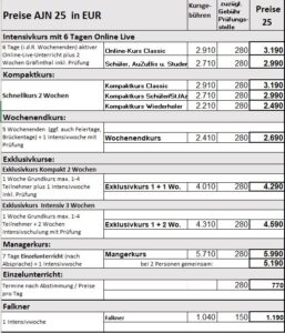 Übersicht Prüfungen AJN 2026 mit KursNr.